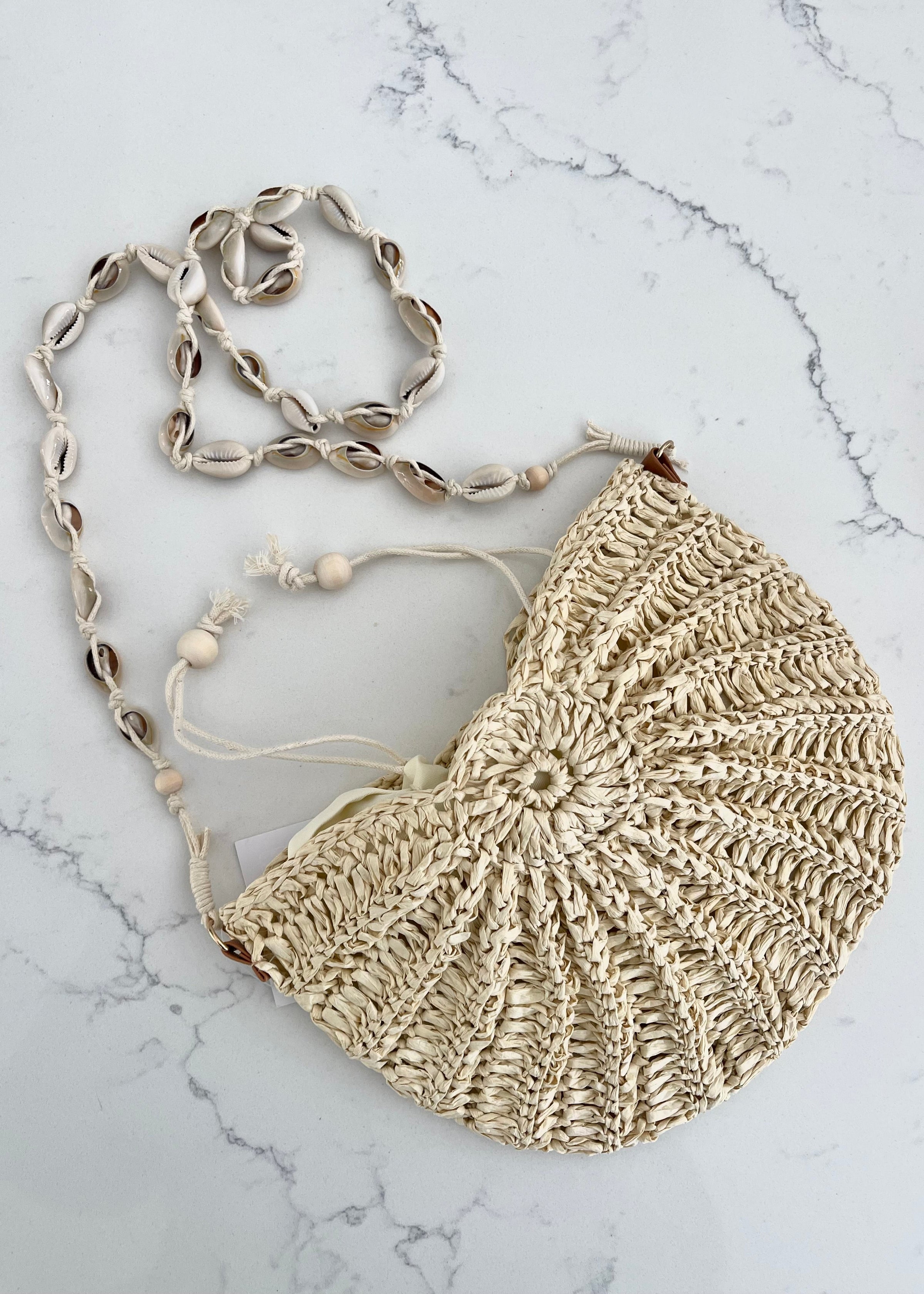 This shoulder bag brings a stunning cowrie shell strap straw braided style. Immerse yourself in fashion finesse with this statement shoulder bag