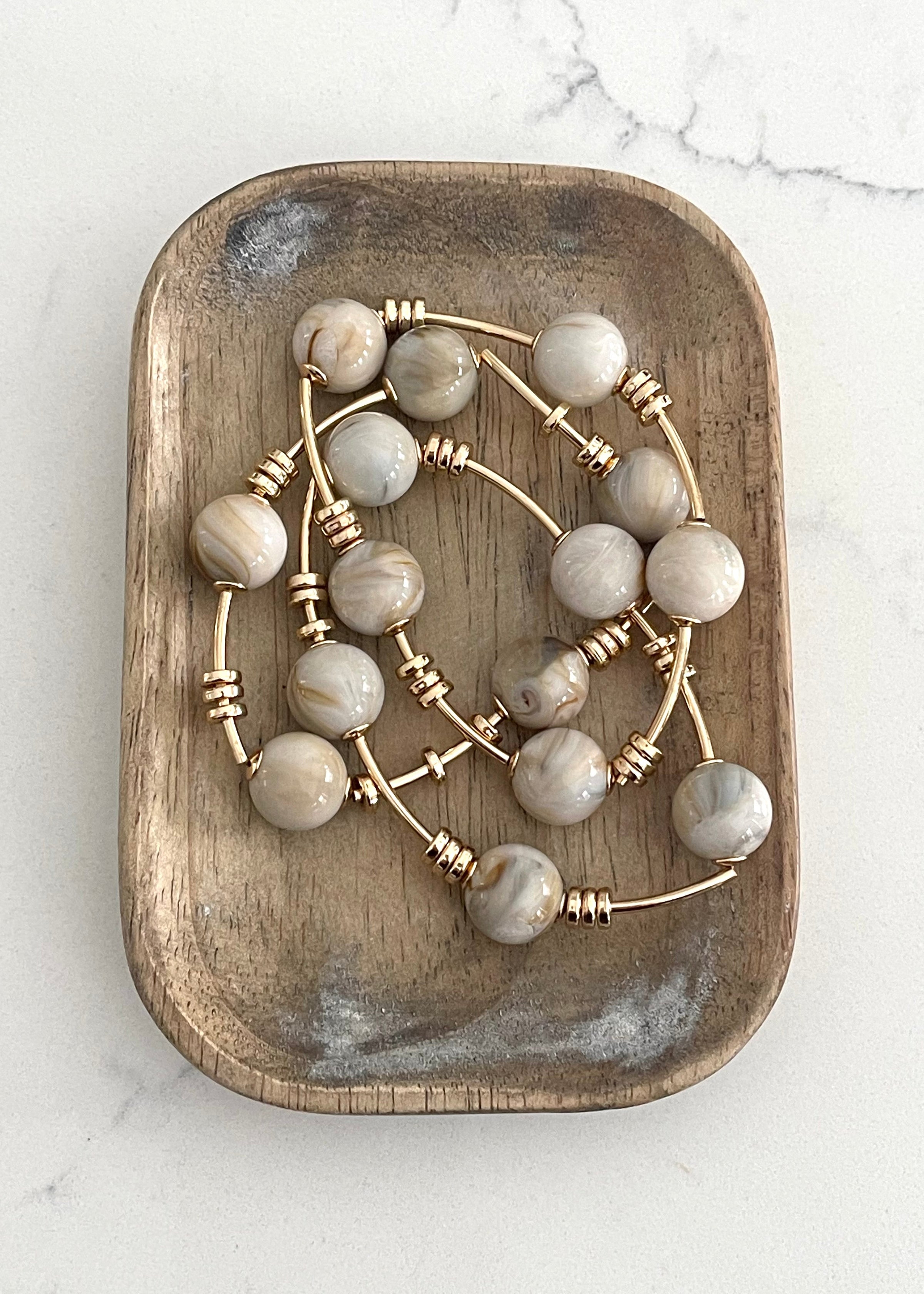 This bracelet introduces a stunning marble resin and bar elastic set style. Elevate your ensemble with this bracelet that effortlessly captures the essence of refined fashion.