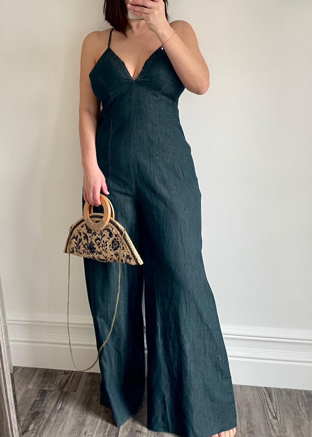 Navy Wide Leg Denim Jumpsuit